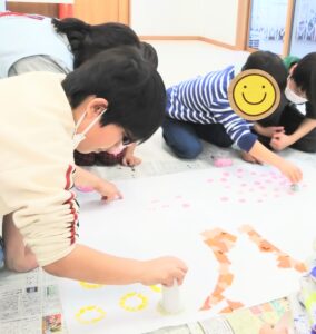 さくらの花や、タンポポの花は、絵の具を使ってスタンピングしました☺️