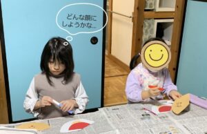 想像をふくらませて、色んな表情の顔を真剣に描き入れていました😊