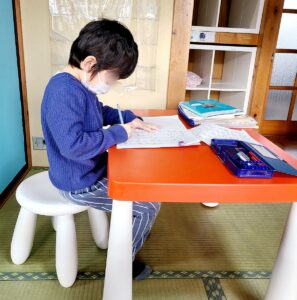指を使って計算しています。毎日の積み重ねで、少しずつ早くなっています。