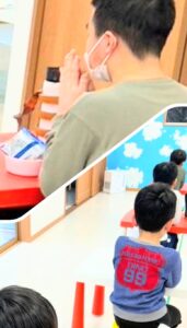 風船を目で追いかけることで、文字を読む時の目の動きを育て、力加減、空間認知の向上を目的として行ないました。😌
