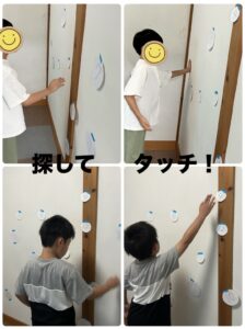 1〜15までの数字が壁に貼られているので、順番に見つけてタッチしていきます。