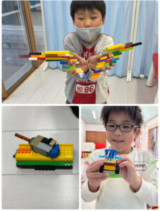 レゴブロックは、物の形を意識し、空間の広がりを理解するのに効果的といわれています。頭の中で考えたことを、実際に手を動かして実行していく中で、