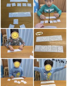 決められた時間で集中して見本を覚え、並べる時に「あれ?こっちだっけ?」と思い出していました。