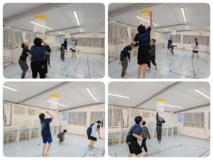 相手のカゴの中のボールを見て、「頑張ってもっと入れよう!」等と声を掛け合い、協力しながら楽しんでいました。😄🎶