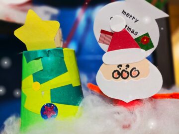 最後に星⭐を上に付け、キラキラシールで飾り付けをしたら、クリスマス飾りの完成です!