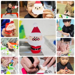 目と鼻を描き入れただけでもそれぞれの個性で様々な表情のサンタさんができました🧑‍🎄
