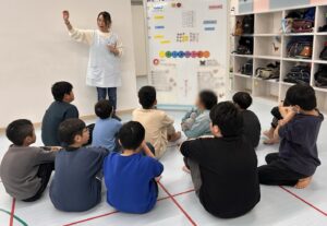 活動において、指示を聞くということはとても大切なスキル。聞く力とは、人の話を聞いて内容を理解して、行動したり、話したりする力のことです。次は何をすればいいのかな?というワクワクした気持ちを保ちながら、話をしている人の方に注目し、聞く力のトレーニングができるよう、楽しめるような活動を準備しています。