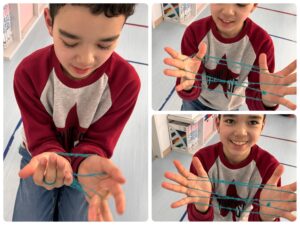 「先生。ちょっと見ていてください!1人あやとりです。」