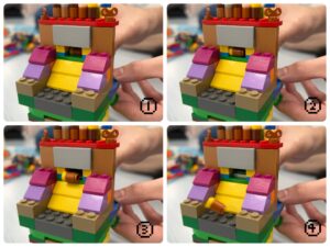 と言い、手をぐるんと回したり返したり開いたりしてるうちに、どんどん形が変わり、あっという間に元の形に戻っていました。手先と頭を使いながら、立体的な感覚や空間認識能力も身につ行く遊びですね。