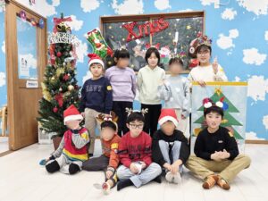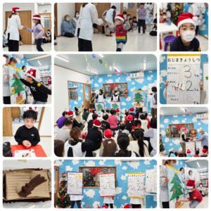 25日、3教室合同でクリスマス会を行いました