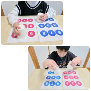 『リズムに合わせて紙コップ数字探し』