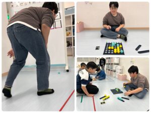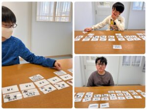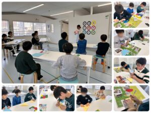 製作・集団活動の時等、大事な約束事や今からやる事を聞く時に、手を止めて話をする人の方を向く。指示は1回に1つずつ出します。聞いた事を行動に移す練習を、繰り返し行っています。