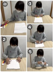 色を覚え、手先を上手に使って巻くことができていました✨巻いたものを手に持ちながら、輪ゴムで留めるのも上手にできていました💮
