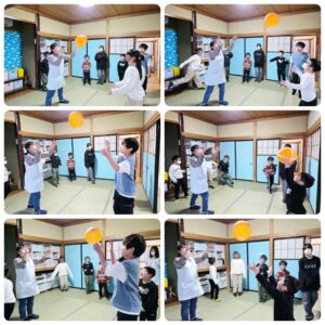 風船はふわっと飛ぶので、コントロールが難しいのですが、ラリーを続けるには相手のことを考えて返さなければいけません。