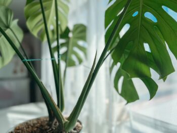職員室の窓際に置いているモンステラが、最近新しい芽をドンドン伸ばしています。
