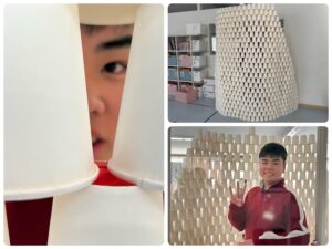自分をぐるりと囲む「お城」を建設!背面の窓から覗くと、満面の笑み。