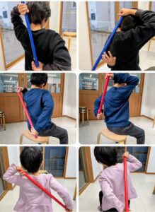 ➤➤こちらは、「ボディイメージ(身体周辺感覚)」を養うことを目的に行いました。