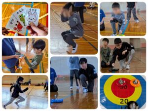 カローリングは、氷上のカーリングを体育館などの床面で楽しめるようにと考案されたニュースポーツになります🥌。今回は、各チームが全てのジェットを投げ終えた時点での点数を合計するというルールで行いました。