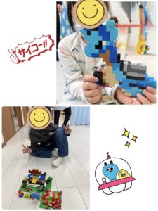 お友達と「僕、そのパーツ使いたいんだけど貸してくれる?」「いいよ!じゃぁ、こっちのパーツ使ってもいい?」など声をかけ合いながら、時には協力して素晴らしい作品を完成させていました。😊